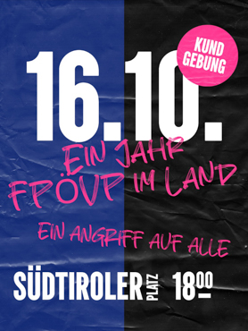Kommt zur Kundgebung am 16.10 um 18:00 am Südtirolerplatz. Setzt ein Zeichen für eine solidarische Gesellschaft und gegen rechte und konservative Politik.“ Wir sehen uns! Wir lesen uns! Wir hören uns! Immer und immer wieder.